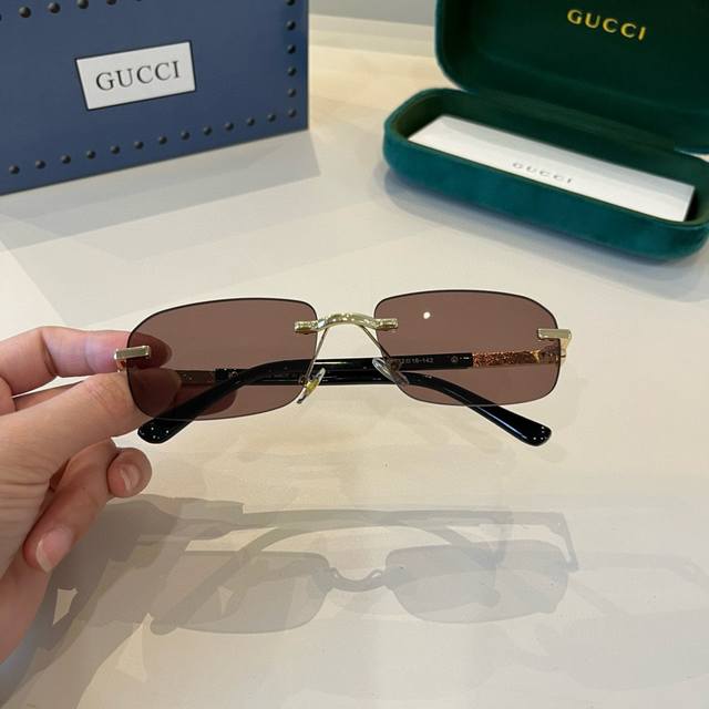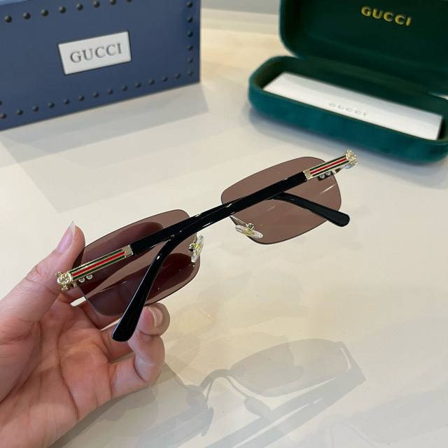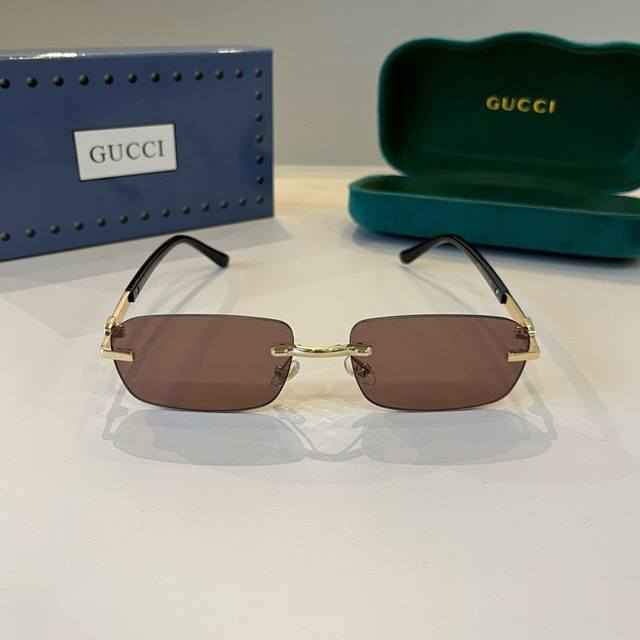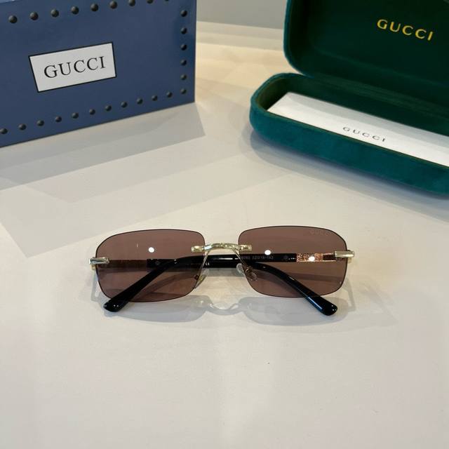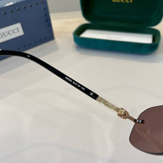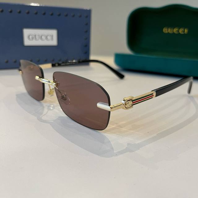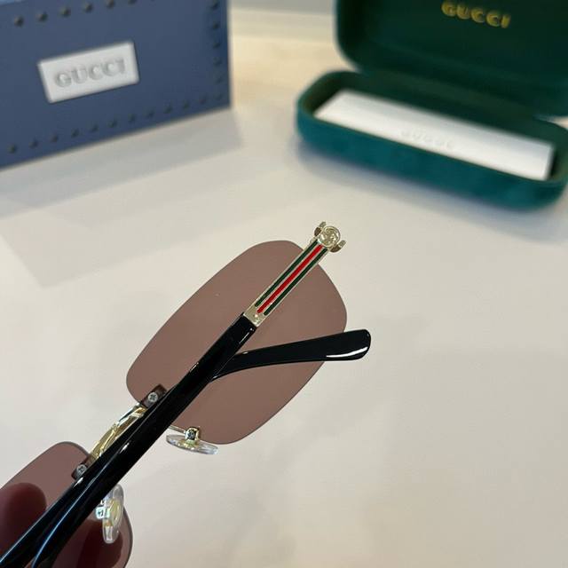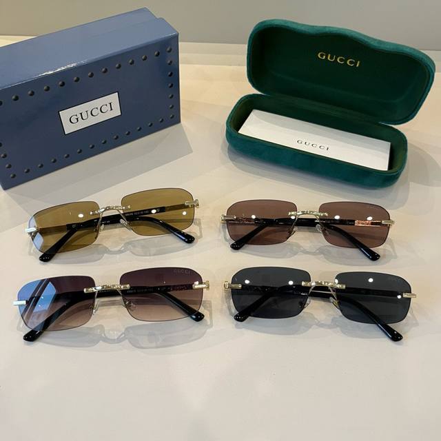 Gucci 2025 latest frameless sunglasses for men, acetate temples, high-definition