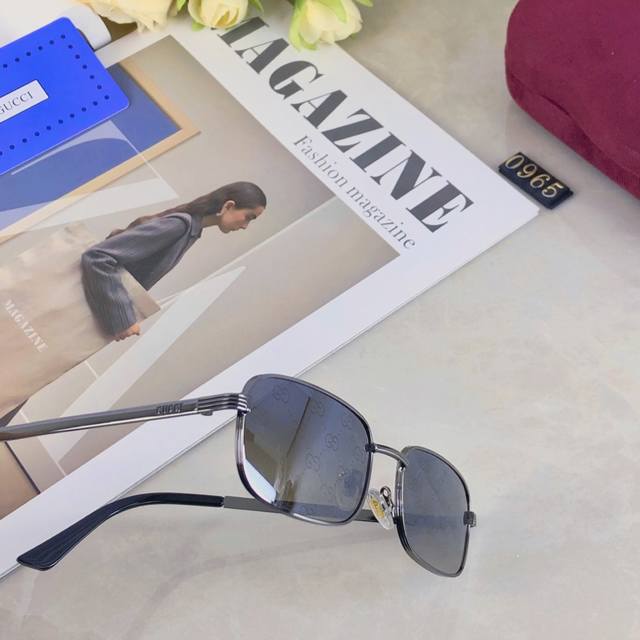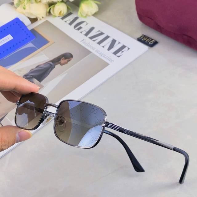 / Gucci2025 new rectangular small frame metal sunglasses for men and women Korean