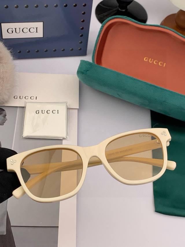 Gucci's classic small-frame design suits all face shapes and looks great with either a coat or a dress. Nylon polarized lenses protect against UV rays. Model: G35504 DDD
