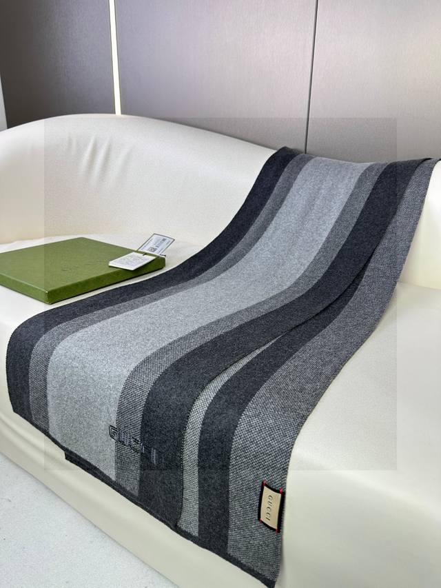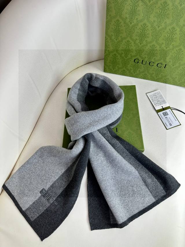 Gucci's hot new high-end men's scarf with classic stripes. Exclusive and simple logo, it embodies a sophisticated winter essential! This exquisite scarf is a rare knit scarf on the market. It is skin-friendly, warm, and has a low-key, luxurious color scheme. It is very soft and comfortable. 100% imported knit cashmere. Size: *32 in three colors 968270
