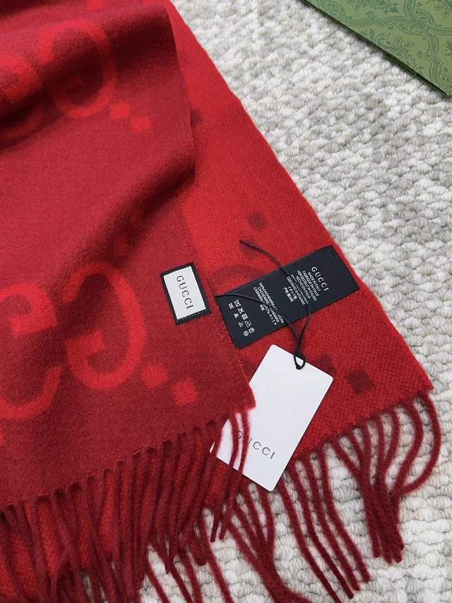 ) A rare pure cashmere product from Gucci! Super stylish large G jacquard, reversible design: one scarf, two ways to style~ Unisex, large shawl size, practical size, a great choice for business trips and travel (