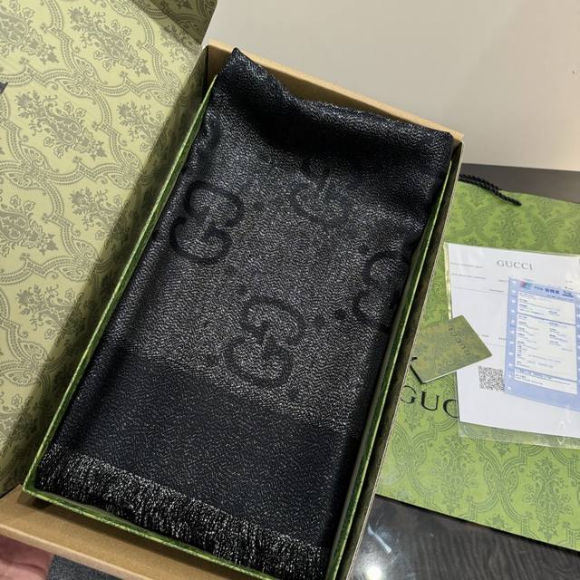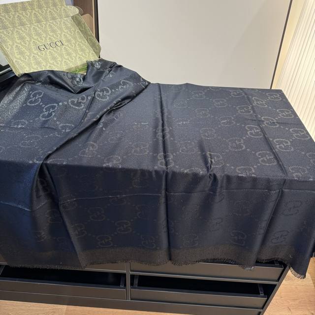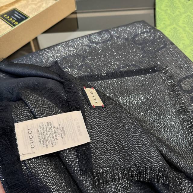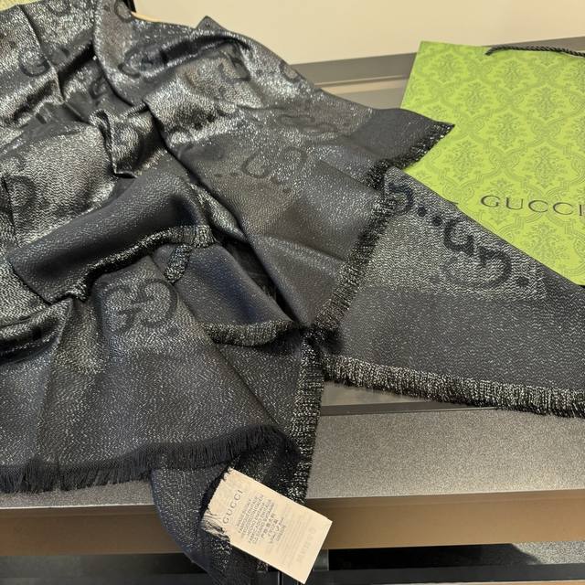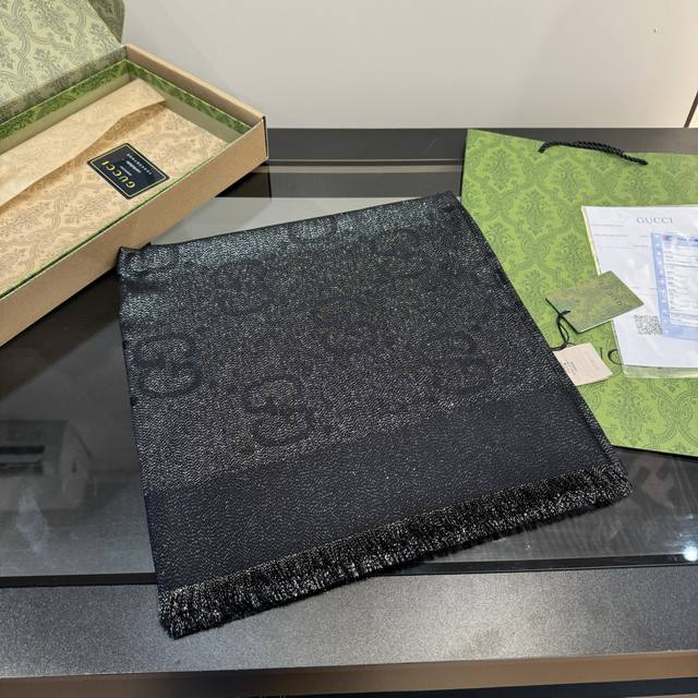 's 2025 Early Autumn Soft Accessories Collection uses delicate tassel trim, logo patches, and exquisite embroidery to inject fresh vitality into the brand's elements. This shawl, named after the initials of the brand's founder Guccio Gucci, is crafted from a Gg wool and silk blend jacquard fabric in white and silver, with tassel trim adding to its charm. Professional dry cleaning recommended.