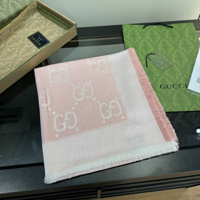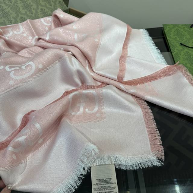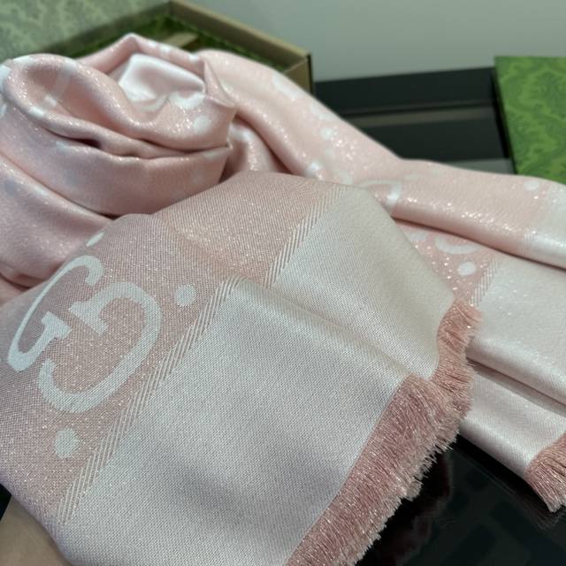 's 2025 Early Autumn Soft Accessories Collection uses delicate tassel trim, logo patches, and exquisite embroidery to inject fresh vitality into the brand's elements. This shawl, named after the initials of the brand's founder Guccio Gucci, is crafted from a Gg wool and silk blend jacquard fabric in white and silver, with tassel trim adding to its charm. Professional dry cleaning recommended.