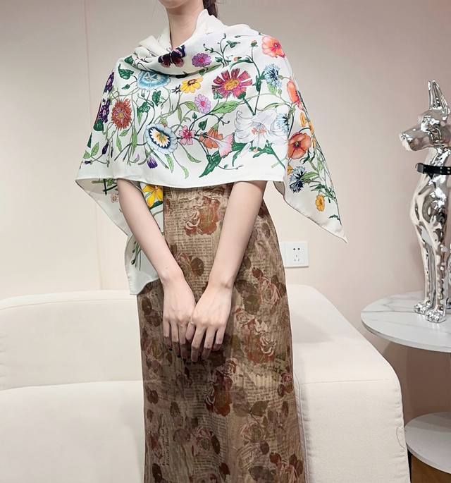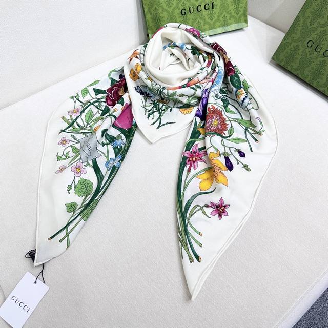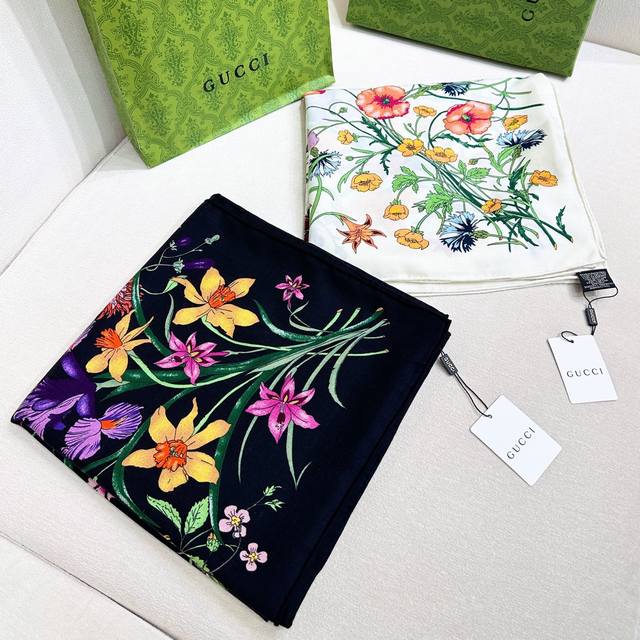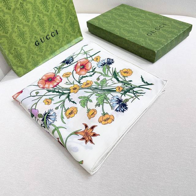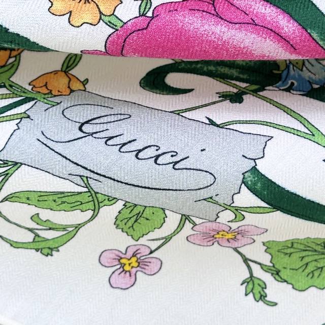 New DDD Gucci Double-Sided Tonal Floral Cashmere Scarf~ Super flattering! Sophisticated and feminine! Cashmere scarves can be this beautiful!!! This Gucci double-sided floral cashmere scarf is truly luxurious! The signature floral pattern complements outfits perfectly! A new fusion of Gucci's signature floral elements and the classic Gucci monogram, exuding luxury and elegance. The thin cashmere feels wonderful, and the double-sided design is truly amazing! Perfect for spring and summer with a white shirt, it's both stylish and chic. In autumn and winter, it pairs exceptionally well with a coat, making it a must-have for fashion-conscious women!! Soft, smooth, and supple! This scarf is incredibly easy to style. A very luxurious design, yet it brings out a uniquely elegant and sophisticated aura! Pair this scarf with a simple base layer for a comfortable and tasteful high-end look. Highly recommended!! Size: 140X140cm Double-sided tonal printed cashmere square scarf DDD