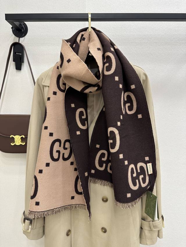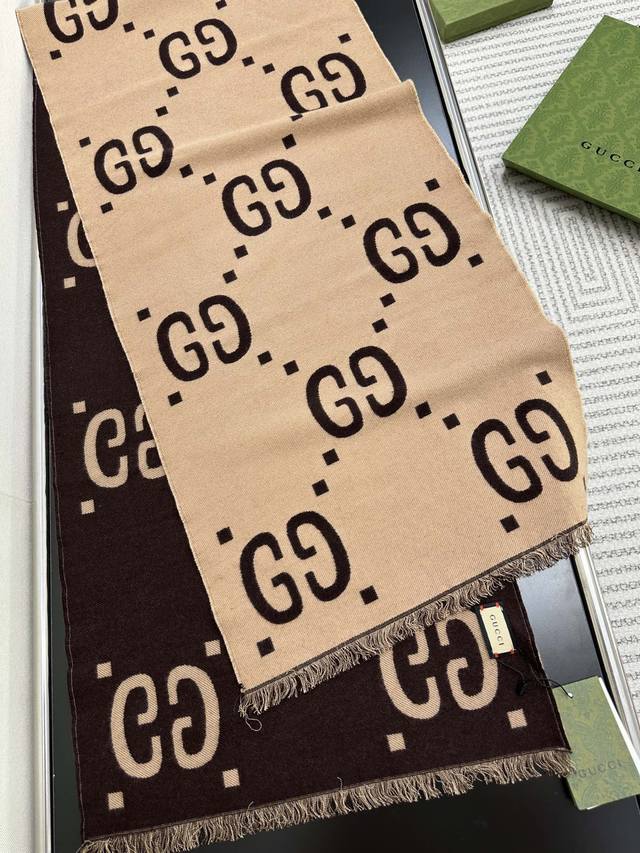 Original factory production by P, this is a Scottish-style double-sided, heavy-duty, super warm GG scarf. The GG logo, a representative traditional essence of Gucci, is always inseparable from the collection, and is innovated in a modern way, presenting extraordinary layers, styles, and designs. (