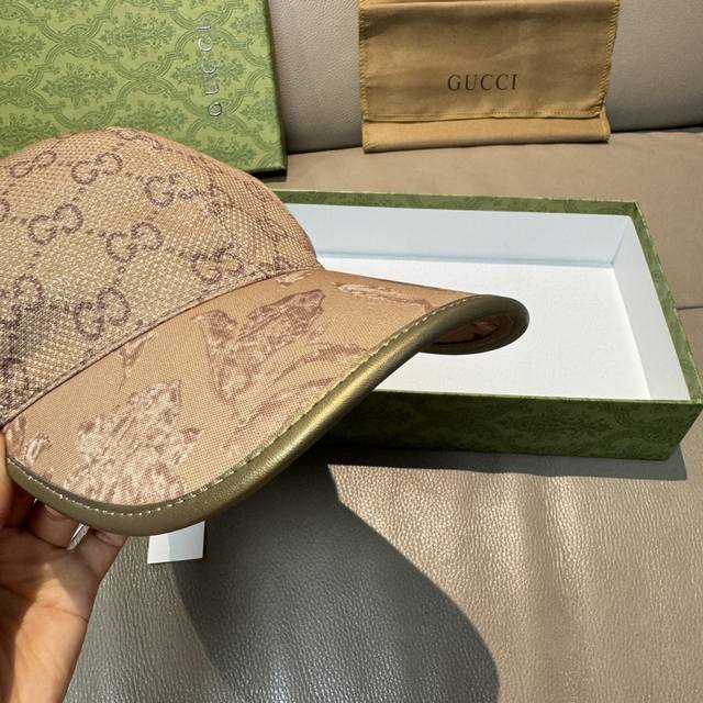 with box bag, Gucci latest original baseball cap, 1:1 custom mold opening at the counter, the highest version, original canvas material + first layer cowhide, light and breathable! Actual product photo, all-season versatile for men and women, basic head circumference 56, patch is adjustable.