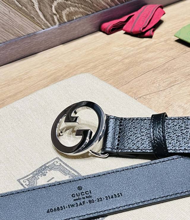 Special Edition: Comes With A Full Set Of Packaging And Gift Box. Gucci, Width 3.0 Cm, Imported Genuine Black Cat Paw Pattern, Paired With Italian Original Leather, Premium Double G Hardware.