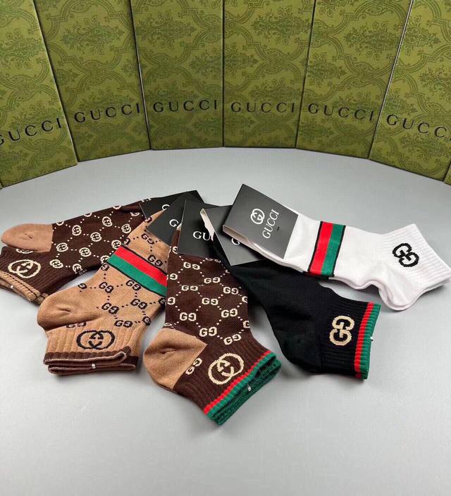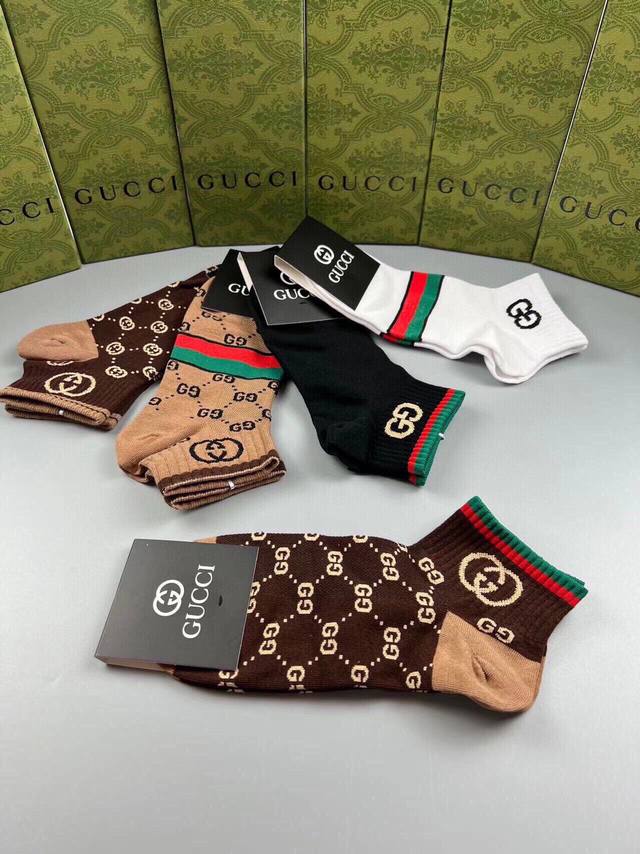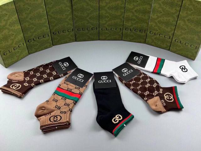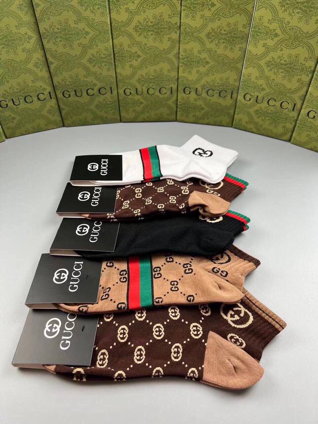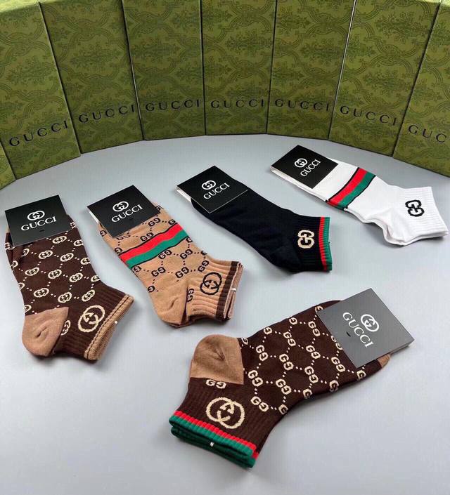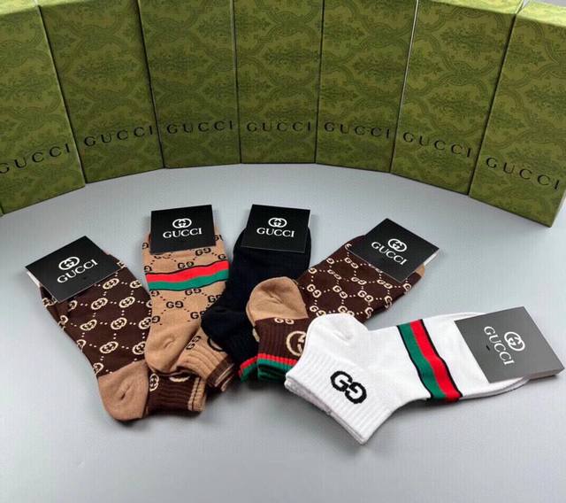 Special Gucci Gucci G new socks, one box of five pairs of jacquard classic logo, super nice, the actual product is super beautiful, super popular small single product, big brand out, trendy must-have, super easy to match