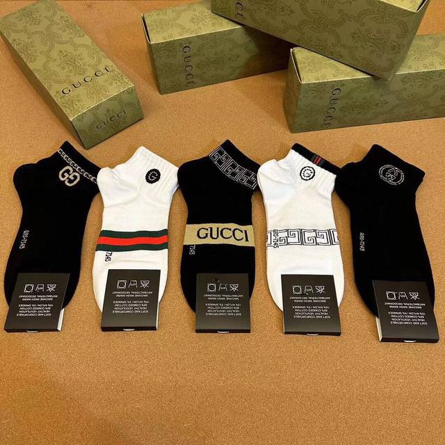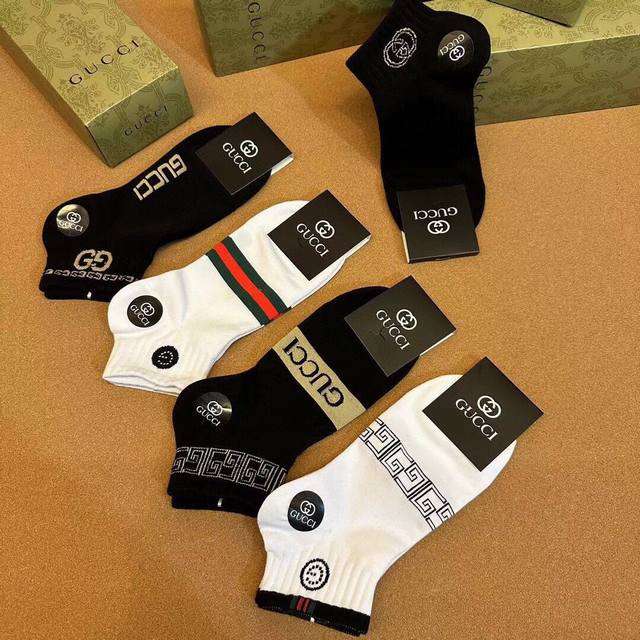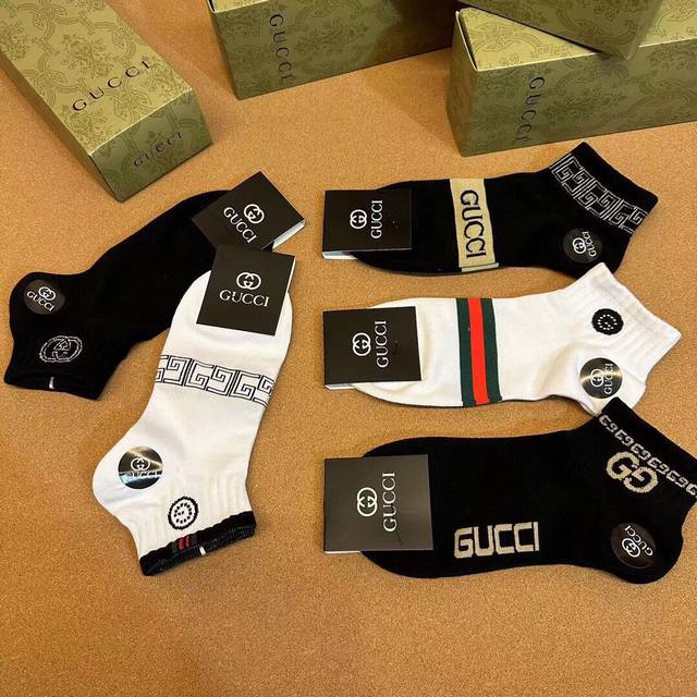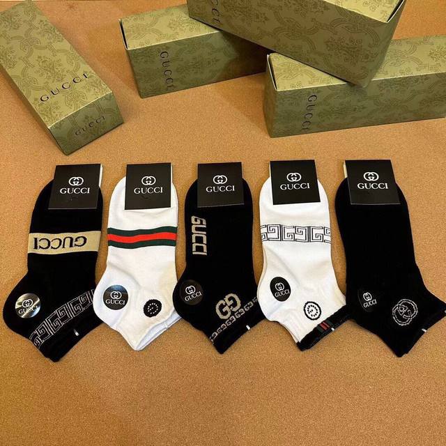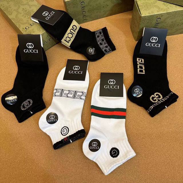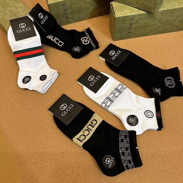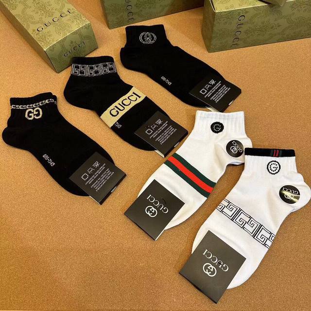 Special Gucci Gucci men's new socks, one box of five pairs of G counter synchronized socks, jacquard classic logo , super nice, the actual product is super beautiful, super popular small single product, big brand out, trendy must-have super easy to match