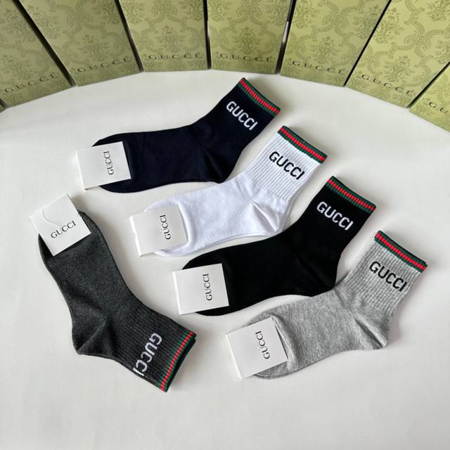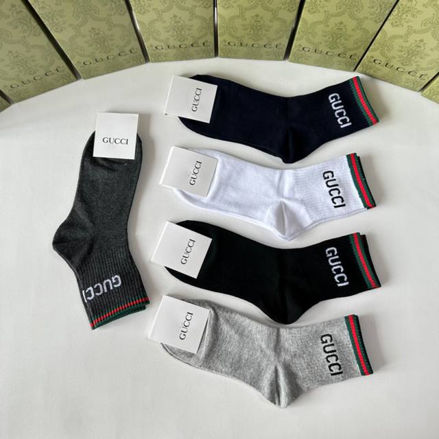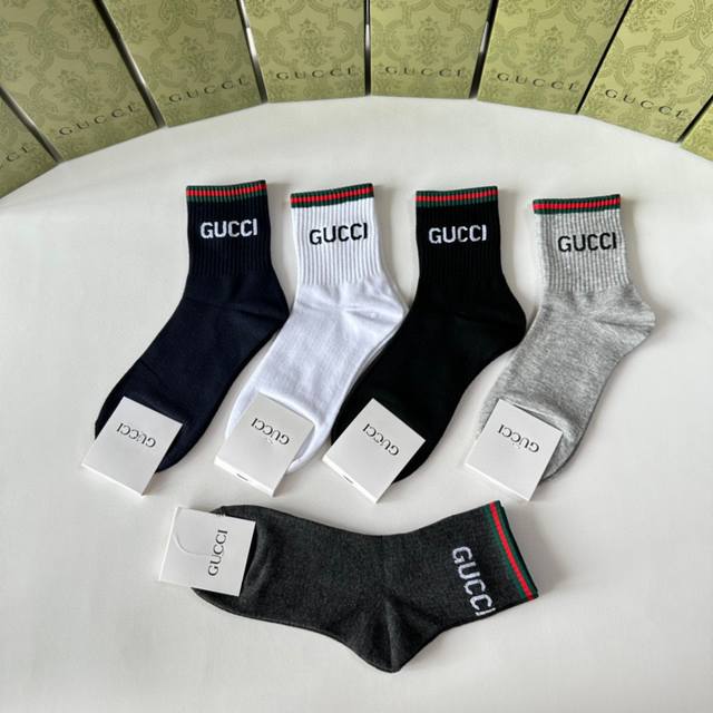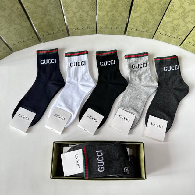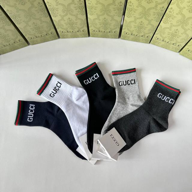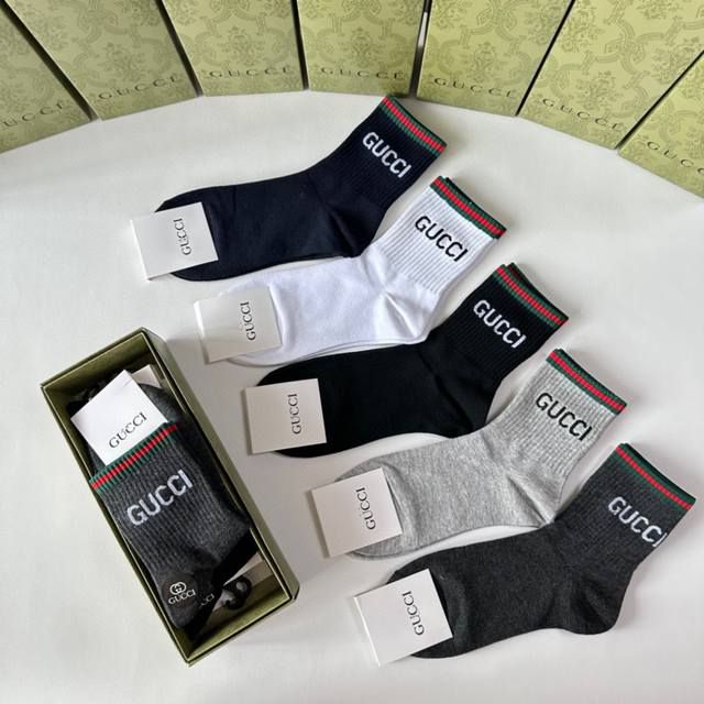 Special packaging from the boutique! Gucci's new mid-calf slouch socks! Five pairs per box, same style as boutique socks, a must-have for trendsetters, super easy to match!