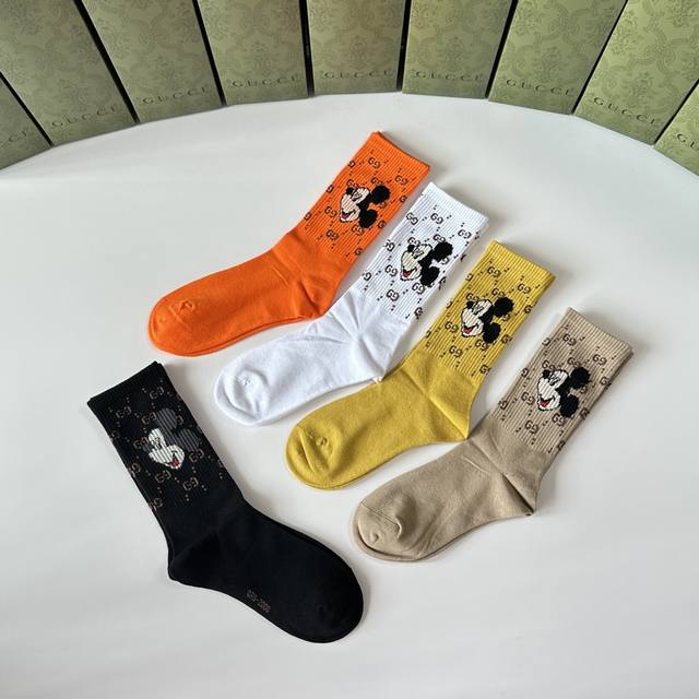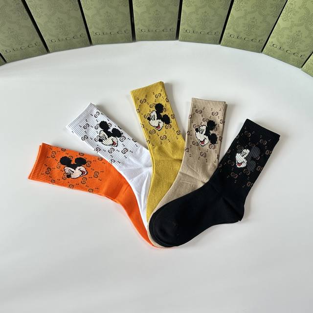 Special packaging from the boutique! Gucci's new mid-length slouch socks! Five pairs per box, same style as boutique socks, a must-have for trendsetters, super easy to match.