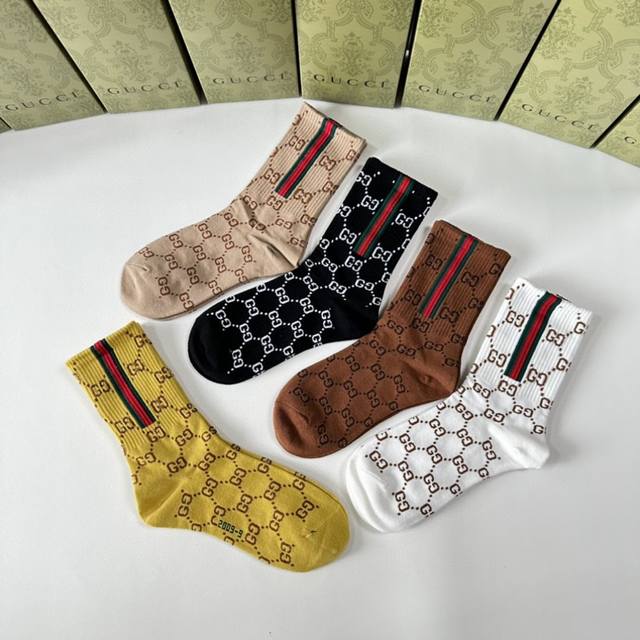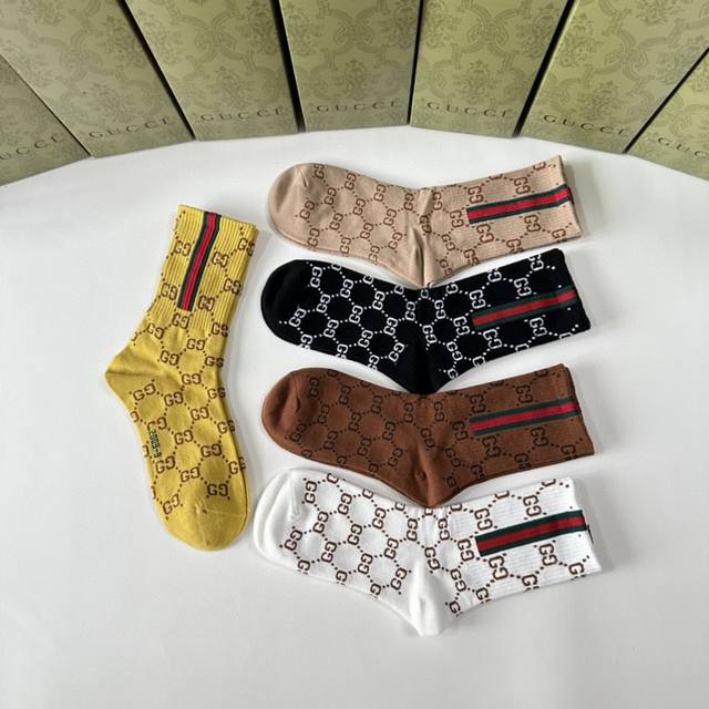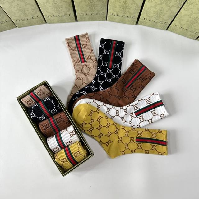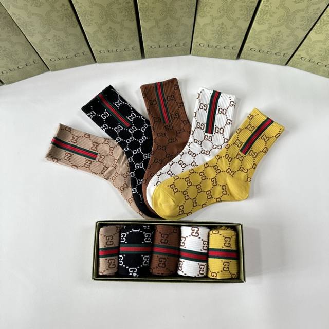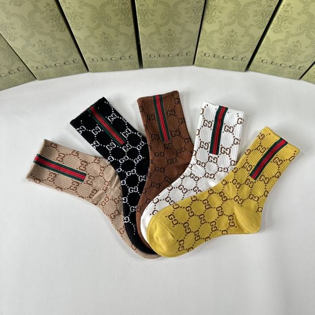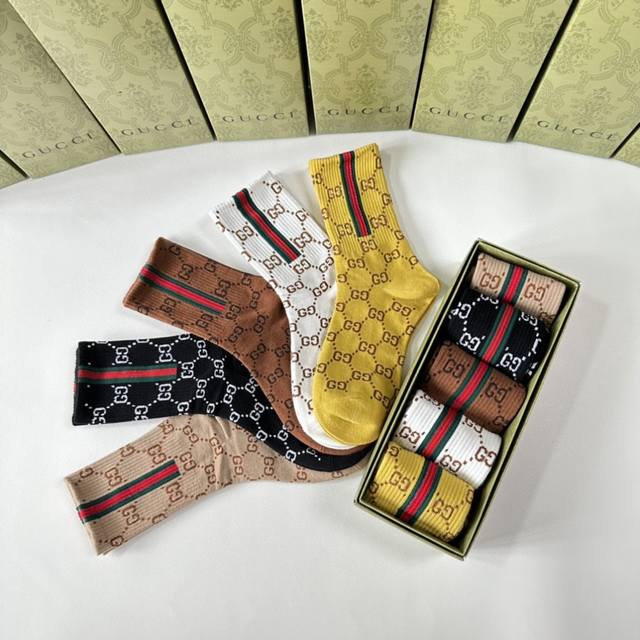 Gucci's new mid-length stacked socks! Five pairs per box, these are the perfect pair for the store, a must-have for trendy people, and super easy to match.