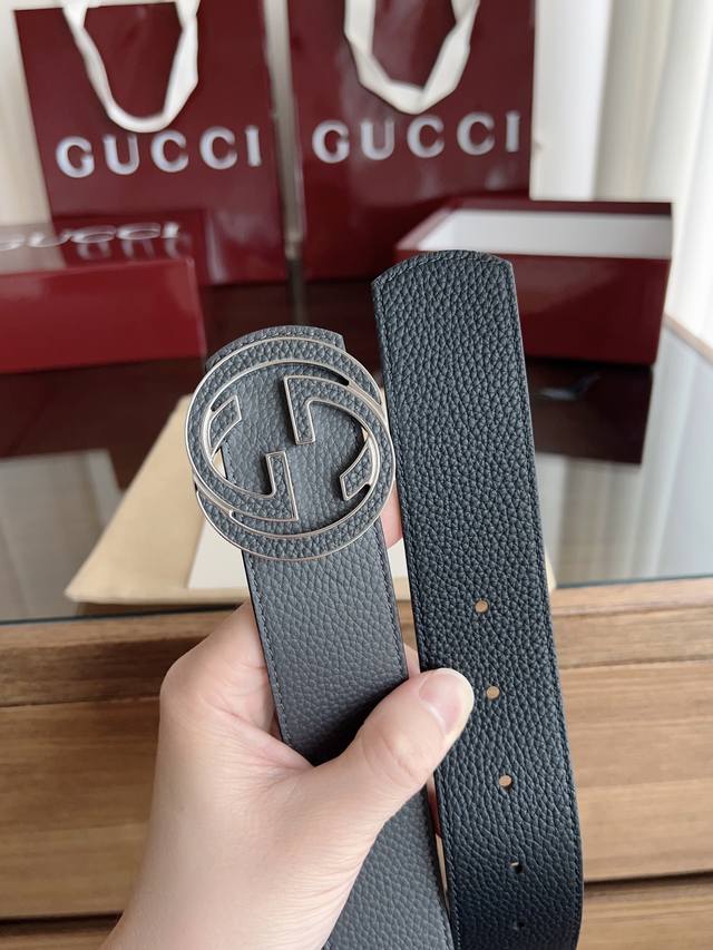 Stunning Gucci Double G buckle men's new belt, 4cm wide, double-sided, imported lychee pattern, double-sided, double-color, available. Exquisite vacuum-plated Double G steel buckle, fashionable and versatile.