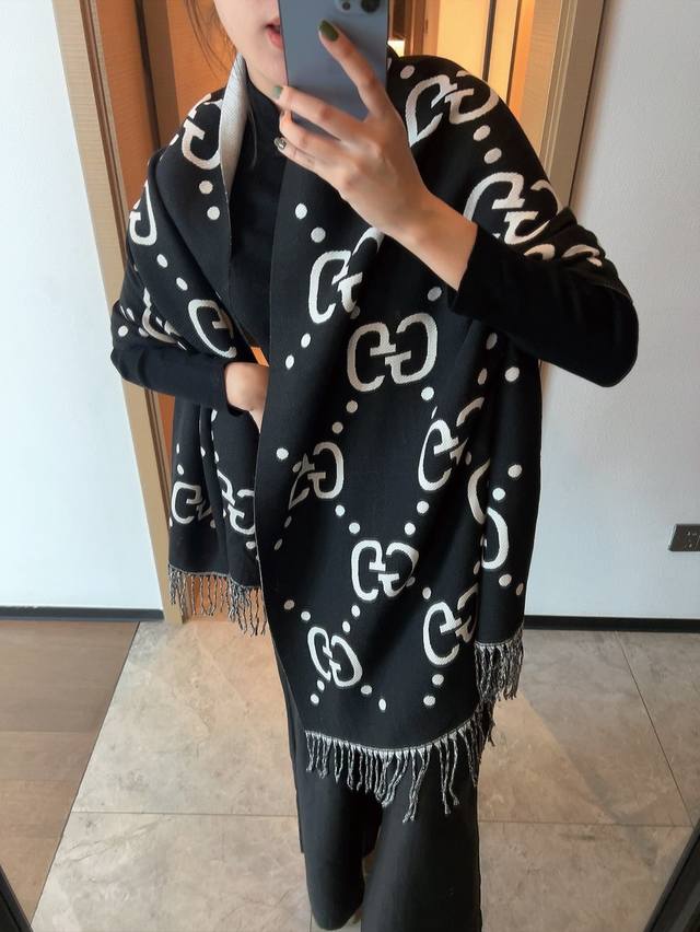 The latest style is so popular that Gucci boutiques worldwide are sold out!! Ours is finally here!!! After a long wait, it absolutely comes from the best quality production line to guarantee perfect quality. Exclusive, top-notch quality, it's for our ladies to confidently show off their beauty!! Perfectly presented, the quality is super, super, super satisfying! Highly recommended!! One side is checkered, the other is monogrammed. I'll share some "how to recognize good stuff" photos later. The quality is unbeatable, incredibly thick and warm! The style goes without saying, if you have an authentic one, compare it to ours, it's practically identical. The tags, serial numbers, hangtags, and main labels are all exactly the same. You're lucky to have bought it, it's pure high-end fashion!! Absolutely a heavyweight! Unlike other scarves, this one has a very special effect, and the cut is incredibly stylish. Even a photo taken with a phone will amaze everyone. High-density, meticulous craftsmanship, high-end items are truly exquisite, a masterpiece. Original fabric 18065