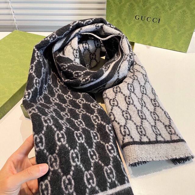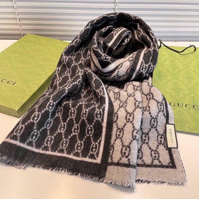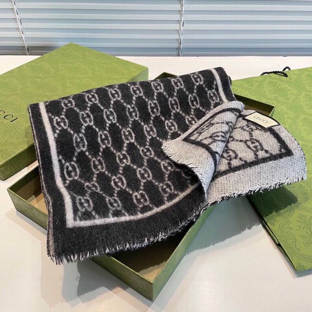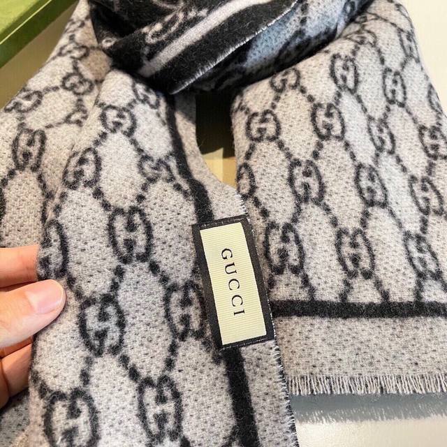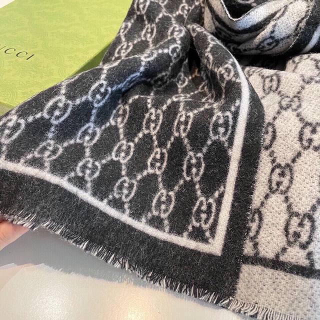 This classic Gucci double G jacquard reversible scarf is suitable for both men and women, stylish and timeless, and looks good anytime. This limited-edition Gucci shawl with classic elements is a truly luxurious and high-end scarf that elevates your style. It adds a touch of sophistication to your overall look, instantly transforming your style. The high-density lettering is incredibly clear, and the fabric is the same as in boutiques