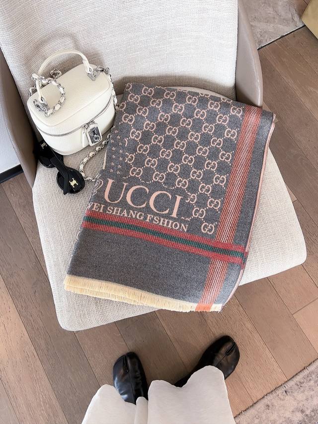 This is a GG jacquard pattern bag in boutique size and color. It's reversible, offering a casual and versatile style. The front features a GG pattern with a solid color on the back. We recommend checking out Gucci stores to see if the size and color match. The fabric is 100% wool jacquard, resulting in a more three-dimensional texture and a softer feel. Size: 65*180. Suitable for couples, families, and both men and women.