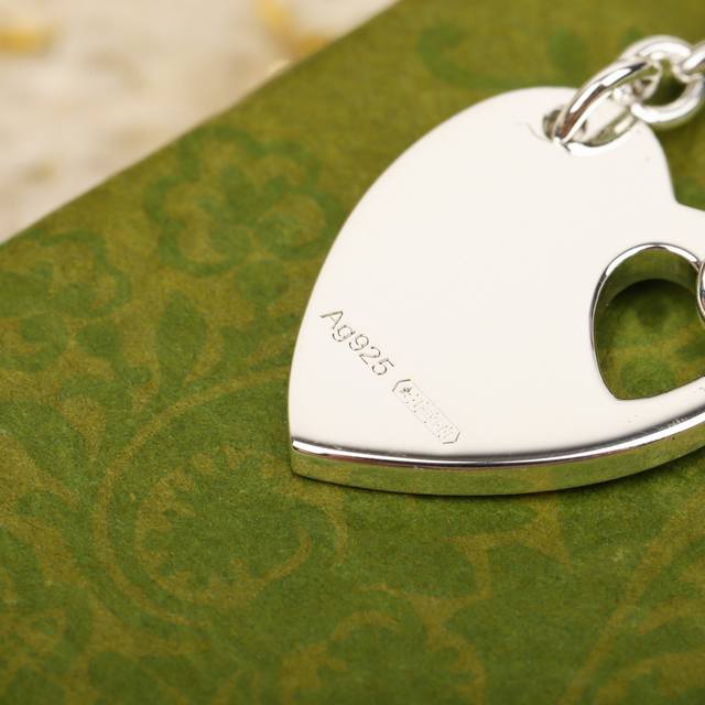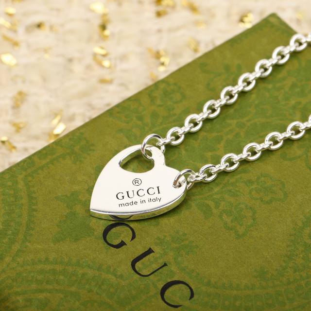 211090 We offer the Trademark series pendant necklace, a must-have for sophisticated ladies. Made of sterling silver. Bulk orders welcome. The Gucci Trademark series cleverly presents the brand name with diverse patterns and hexagonal pendants. The early autumn collection incorporates playful elements such as openwork heart designs and padlock pendants, giving your rings, necklaces, bracelets, and earrings a unique charm. These hoop earrings are cleverly paired with a heart-shaped pendant featuring an openwork heart design, showcasing exquisite quality. Made entirely of 925 silver for longer color retention.