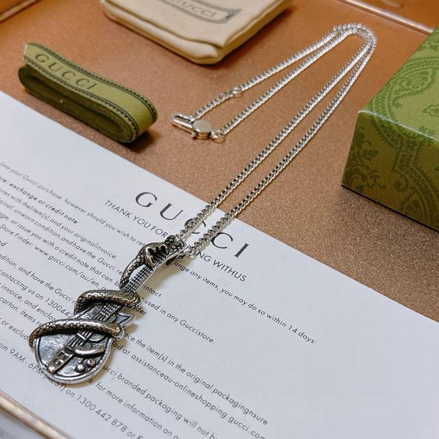 A guy's outfit that doesn't look out of place. Recommended by Xiaohongshu, this is the latest Gucci necklace from influencers. This chain is even more upscale, a celebrity favorite. The Anger Forest series features a double-G snake and guitar-inlaid vintage Gucci necklace. This necklace adds a touch of elegance to high-end outfits, adding a touch of class and personality. The detailed, distressed finish is a unique finish, unlike the more common glossy finishes. This is a long-time Gucci bestseller and is a great match.