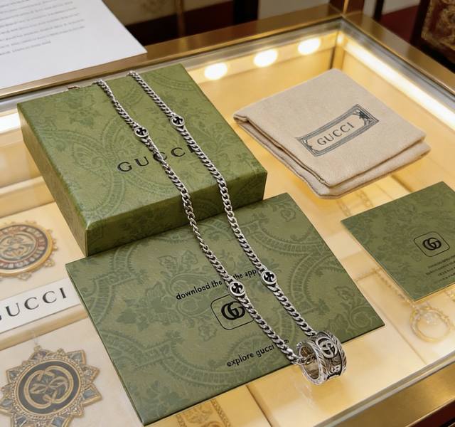 A must-have for Douyin influencers and online celebrities! This latest Gucci necklace features a more upscale chain and is a celebrity-endorsed Anger Forest series double G design. It elevates your style, making you look more sophisticated and confident. The details are perfectly matched to the original silver finish, a rare find in the market. This is a consistently best-selling Gucci piece that's incredibly versatile.