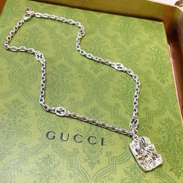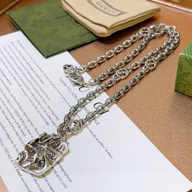A must-have for Douyin influencers! This latest Gucci necklace features a more upscale chain and is a celebrity-endorsed Anger Forest series double G retro pattern. It elevates your style, making your outfits more sophisticated and stylish. The details are exactly as pictured, with a distressed finish unlike the glossy versions found elsewhere. This is a consistently popular Gucci piece that's incredibly versatile.