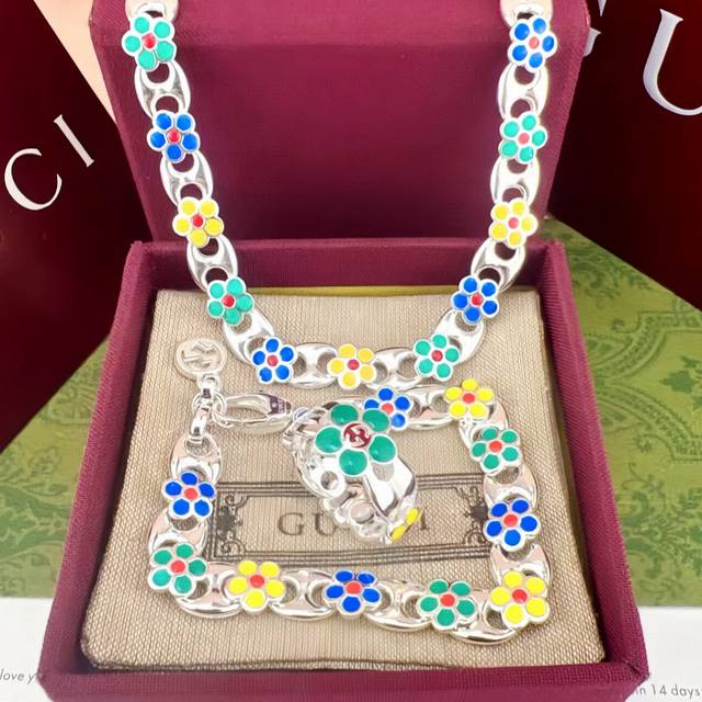/ Bracelet Necklace Gucci Double G Classic Flower Necklace Bracelet 18-20-22Cm Ri