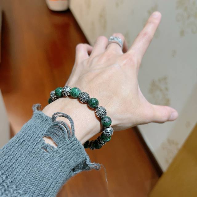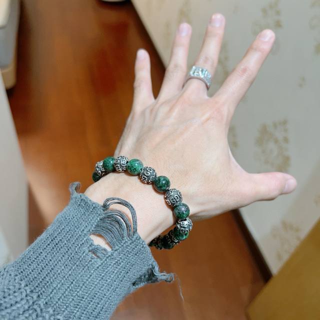 Gucci bracelet, unisex, latest natural stone green jade flower bracelet, higher grade, same as celebrity style, Anger Forest series double G agate bracelet