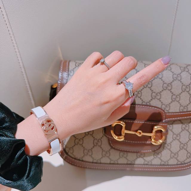 Gucci bracelet/ring, a handcrafted, latest style for Qixi Festival Chinese Valentine's Day, a high-end celebrity-endorsed Anger Forest series double G classic style. Details are accurate, with a 1K gold finish, unlike the glossy versions on the market. This is a consistently best-selling Gucci item that goes very well with trendy clothes.