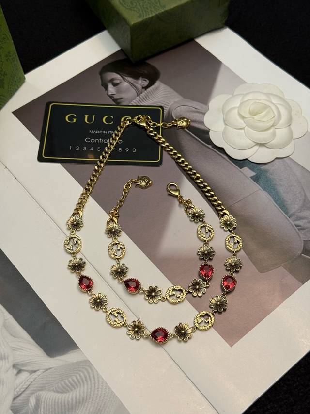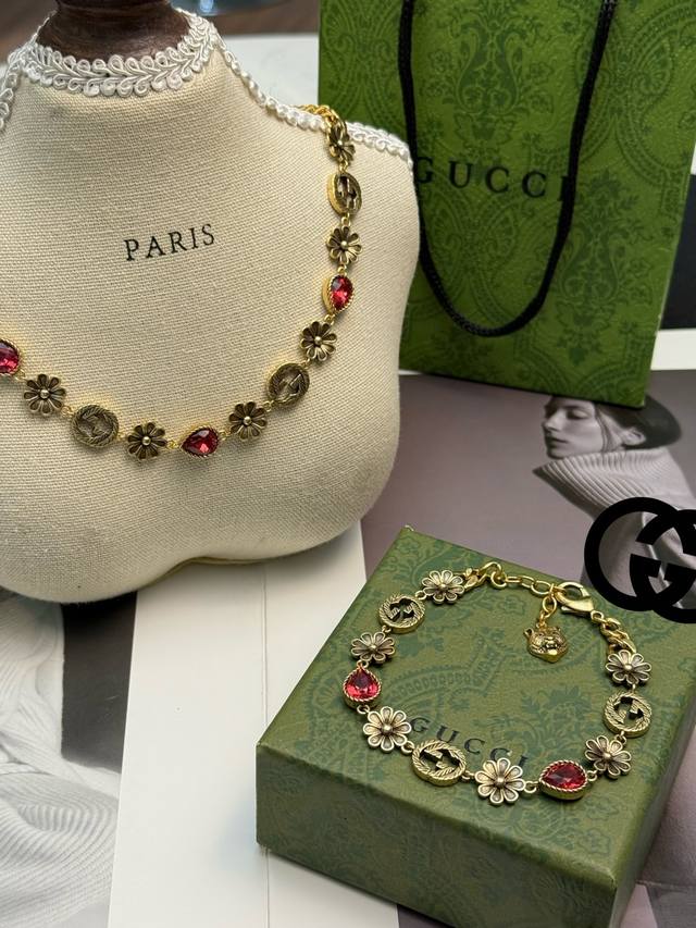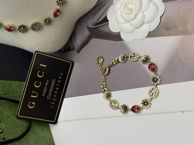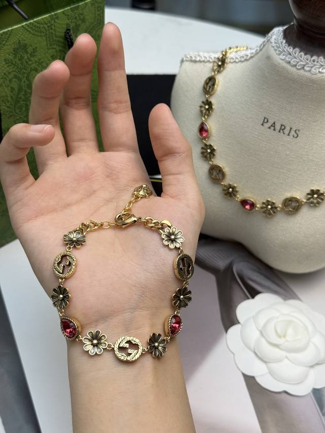Gucci Colored Diamond Bracelet and Necklace Set (Gucci!) A strong retro trend has swept the fashion world, especially in jewelry. This black diamond bracelet with vintage gold is very fashionable and unique, exuding a noble and domineering aura. I immediately decided to keep this color for myself; it's perfect for any occasion and an absolute must-have. A dark and edgy style!