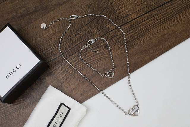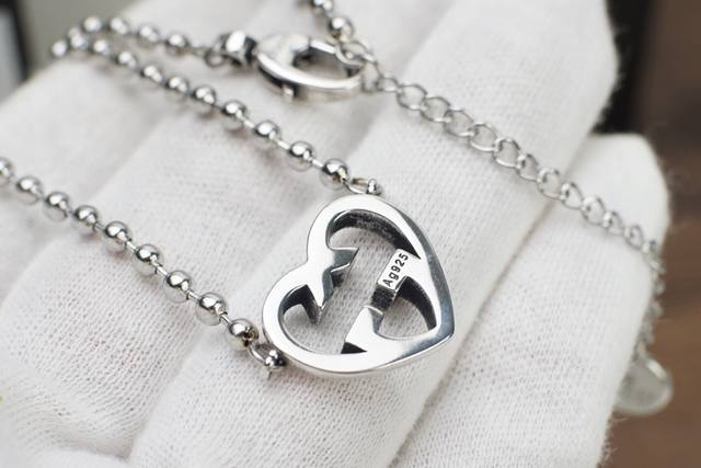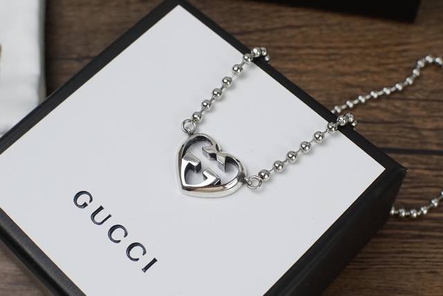 Gucci Double G Interlocking Heart Necklace The classic Double G logo is detailed without being exaggerated. The most representative heart G logo hangs on the beaded chain, which is eye-catching, chic, elegant and fashionable. A must-have item.