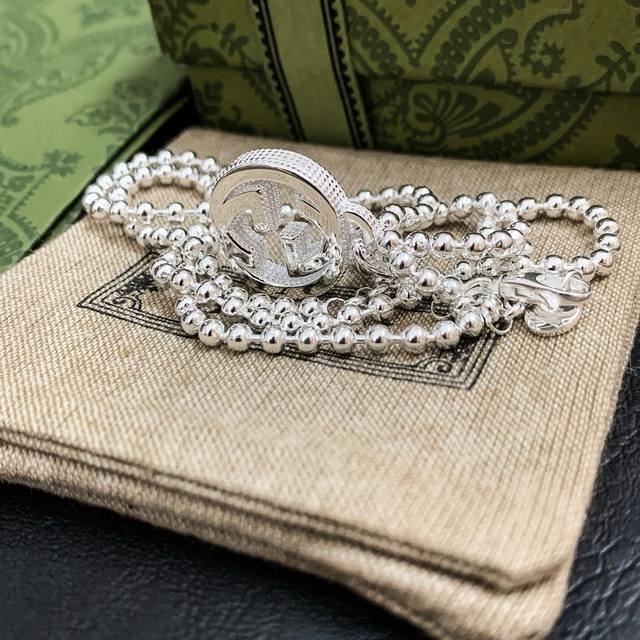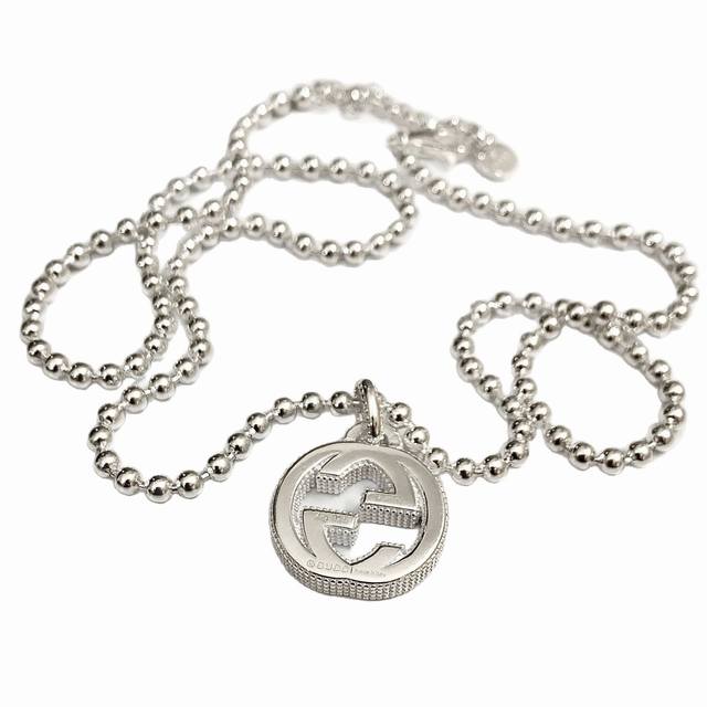 Electroplated silver brand logo design pendant Small round bead double G necklace