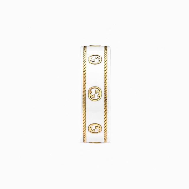 Gucci Lcon series gold interlocking double G ring, exquisite version, ceramic material.