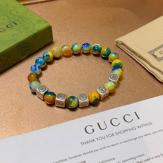 Gucci luxury bracelet, unisex, latest model, all-agate beaded bracelet, higher-end, celebrity-themed, Anger Forest series double G vintage Gucci bracelet. Size: 16-24 cm. Detailed, matching distressed finish, not the usual shiny finish. This model has always been a Gucci bestseller, perfect for pairing with any outfit.