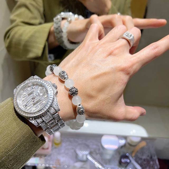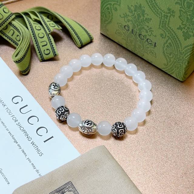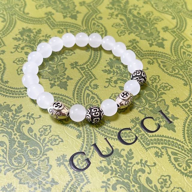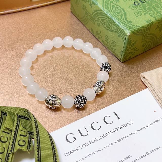 Gucci Luxury Bracelet, White Agate Crystal, Unisex, Latest Full-Piece Beaded Bracelet, Higher Grade, Celebrity Style, Anger Forest Series, Double G Vintage Gucci Bracelet. Size: 16-24 cm. Details match the original, distressed finish , not the glossy finish found in the market, not the ordinary workmanship. This is a consistently best-selling Gucci style, very versatile.