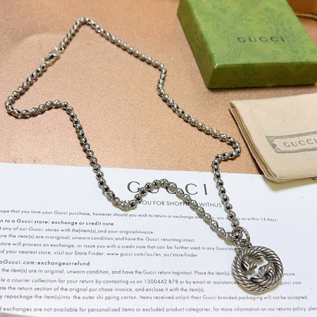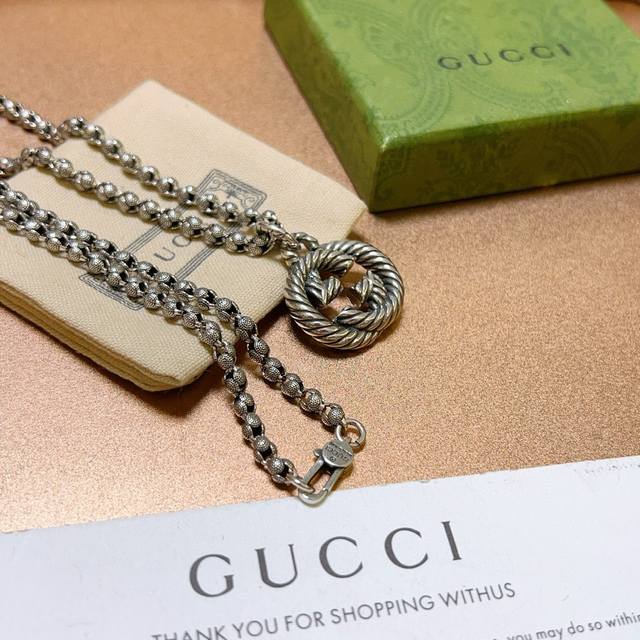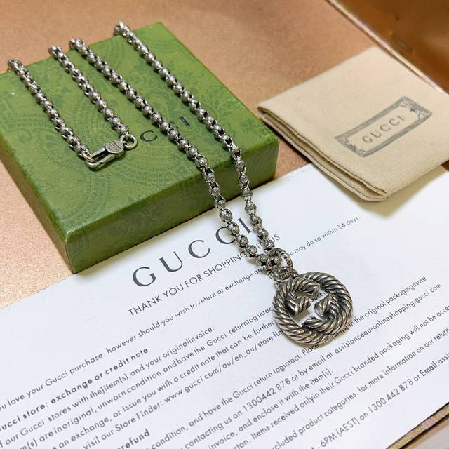 Gucci Necklace - Latest Model, Higher-End Chain, Celebrity Style, Anger Forest Series, Classic Double G Punk Necklace, Retro Single Clasp Necklace. Details match the original, distressed finish, not the glossy version found in the market. This is a consistently best-selling Gucci piece, very versatile and easy to match with trendy clothes.