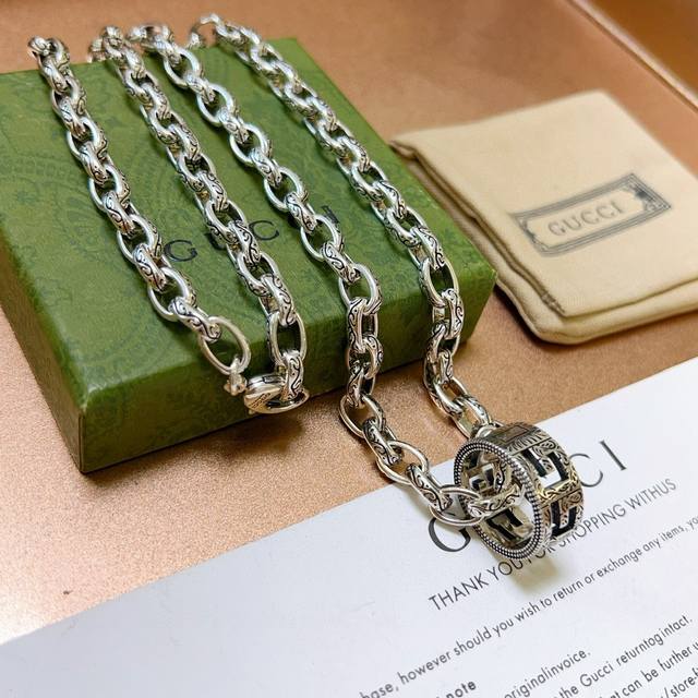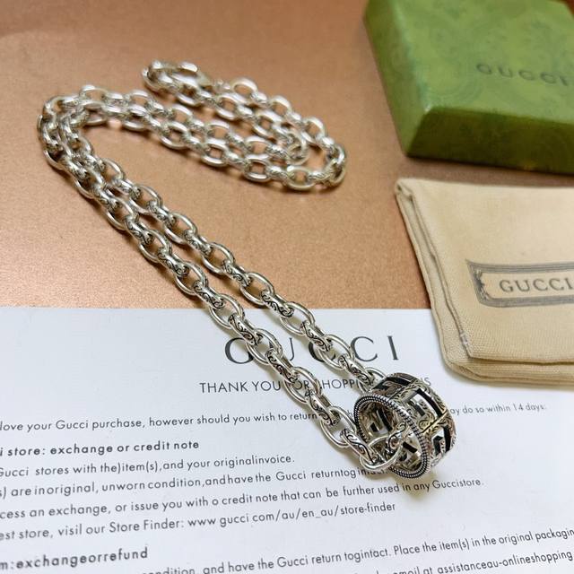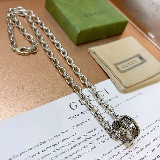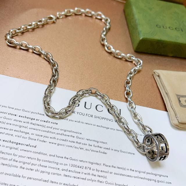 Gucci Necklace - Latest Model, Higher-End Chain, Celebrity Style, Anger Forest Series, Double G Classic Series, Vintage Silver Necklace. Details match the original, with an antique finish, unlike the glossy versions found on the market. This is a consistently best-selling Gucci piece that goes very well with trendy outfits.
