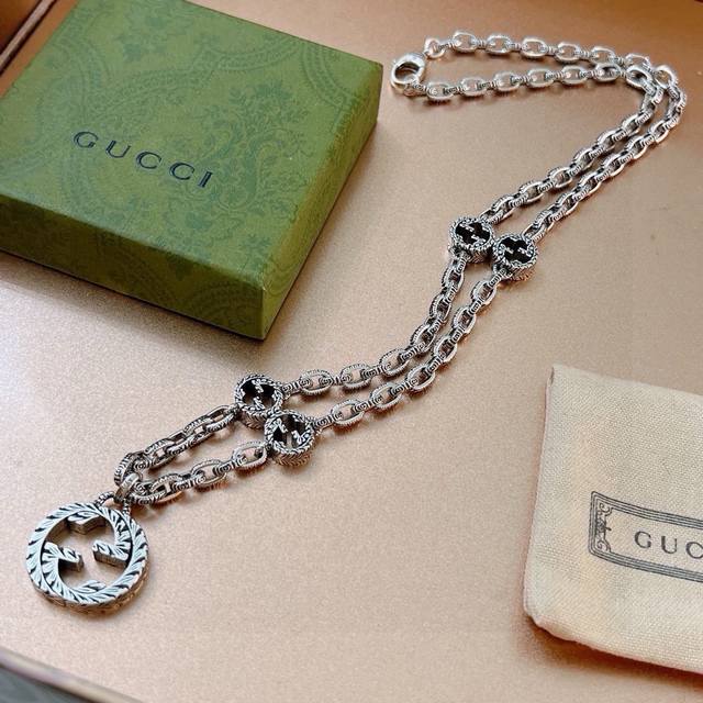 Gucci Necklace - Latest Model, Higher-End Chain, Celebrity Style, Anger Forest Series Double G Gucci Necklace (60cm Chain Length, Adjustable). Gucci Retro European & American Trendy Style. Details match the original, distressed finish, not the glossy version found in the market. This is a consistently best-selling Gucci piece, very versatile and easy to match with trendy clothes.
