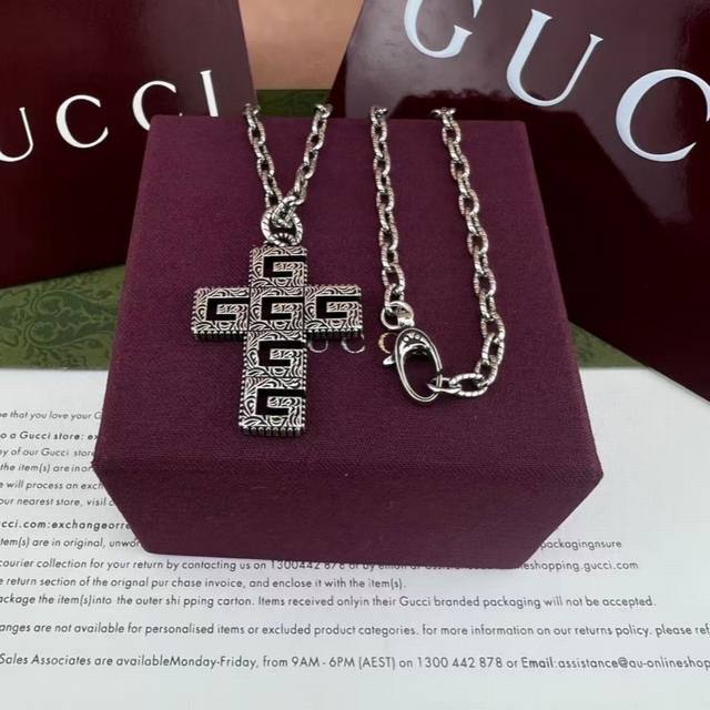 Gucci patterned cross necklace DDD