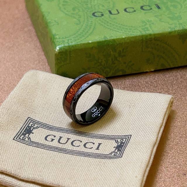 Gucci ring, latest style, higher grade, celebrity style, Anger Forest series, V gold with a deep, rich texture, double G, pure handmade craftsmanship, high-end custom Gucci ring, inlaid with pear wood. Details are exactly as pictured, pure handmade finish, not the glossy version found in the market. This is a consistently best-selling Gucci style, very easy to match with trendy clothes. Sizes 8, 9, 10, 11 available. Unisex couple ring.