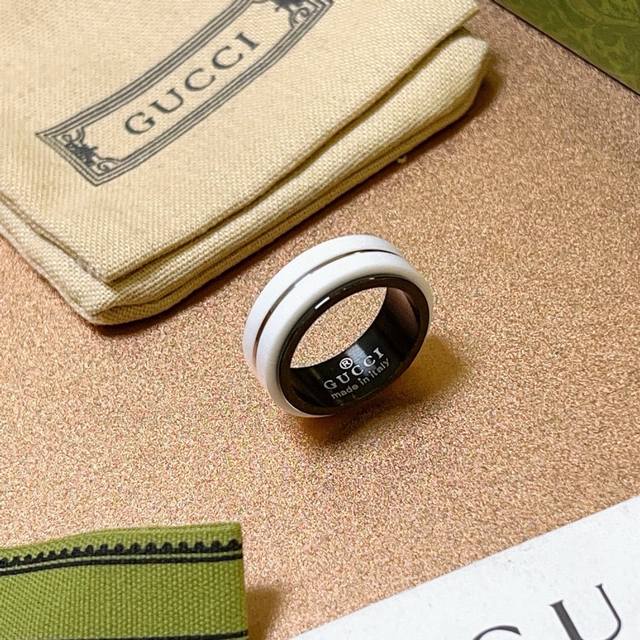 Gucci ring, latest style, higher grade, celebrity style, Anger Forest series, V gold with a deep, rich texture, double G, pure handmade craftsmanship , Gucci ceramic ring, high-end custom design. Details perfectly matched to the original, pure handmade finish, not the glossy version found in the market. This is a consistently best-selling Gucci ring, very easy to match with trendy clothes. Sizes available: 7, 8, 9, 10, 11. Unisex couple ring.