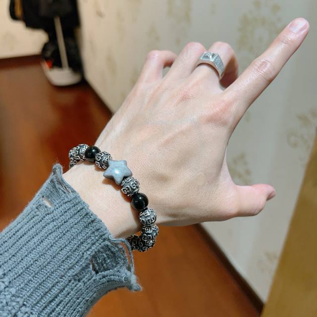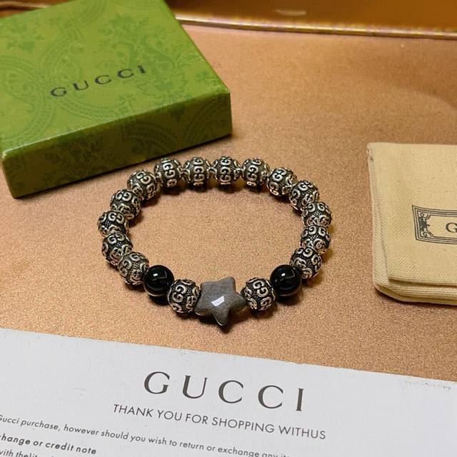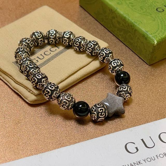 Gucci unisex bracelet, latest style, natural obsidian bracelet, higher grade, celebrity style, Anger Forest Year of the Dragon series double G obsidian agate crystal bracelet. Size: 16-24 cm. Details: accurate to the original, distressed finish, not the glossy finish found in the market, and different workmanship. This is a consistently best-selling Gucci style that goes very well with clothes.