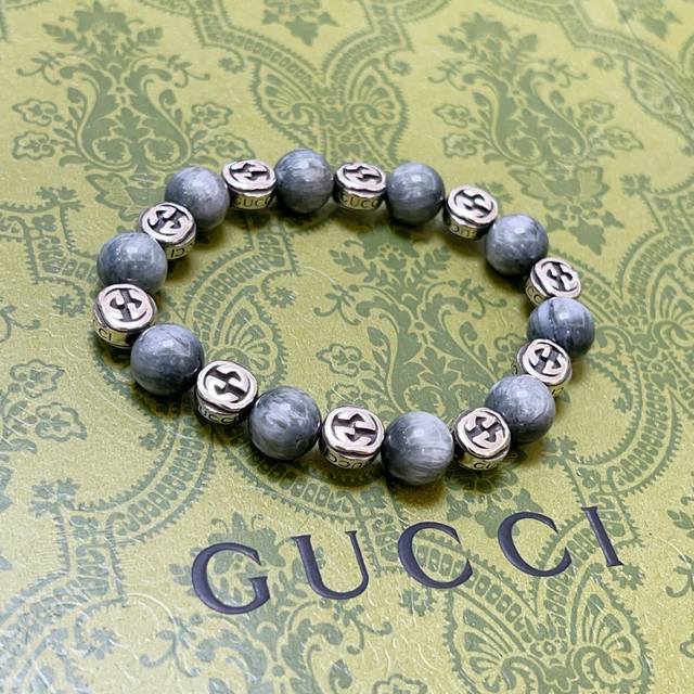 Gucci unisex bracelet, latest style, natural stone bracelet, higher grade, celebrity style, Anger Forest Year of the Dragon series double G natural stone bracelet. Size: 16-24 cm. Details match the original, distressed finish, not the glossy finish found in the market, and the workmanship is not ordinary. This is a consistently best-selling Gucci style that goes very well with clothes.