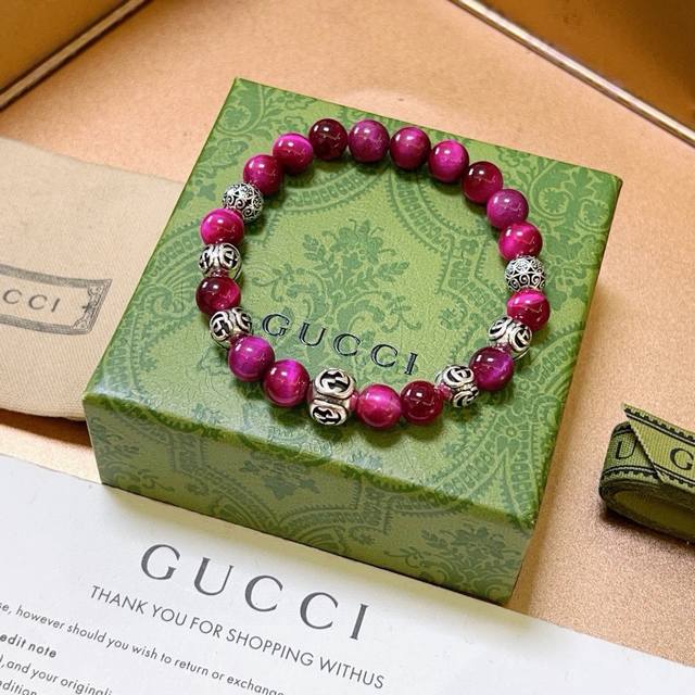 Gucci unisex bracelet, latest style, natural tiger's eye stone bracelet, higher grade, celebrity style, Anger Forest series double G tiger's eye crystal bracelet. Size: 16-24 cm. Details match the original, distressed finish, not the glossy finish found in the market, and not the ordinary workmanship. This is a consistently best-selling Gucci item and goes very well with clothes.