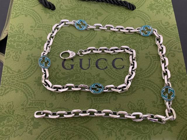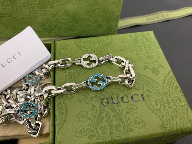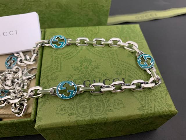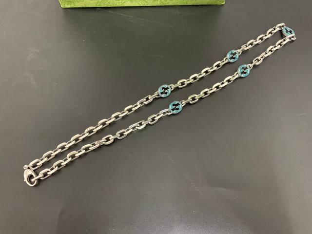 / In Stock! Gucci New Green Enamel Interlocking Double G Necklace, Length: 60cm, I