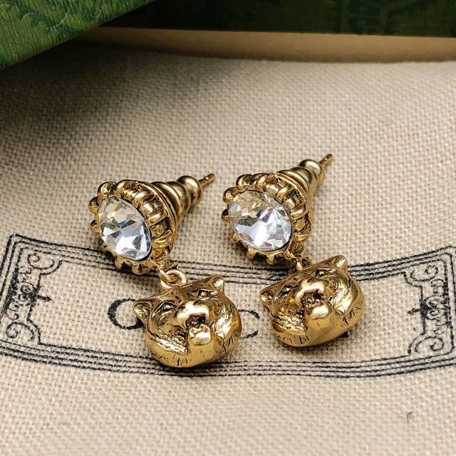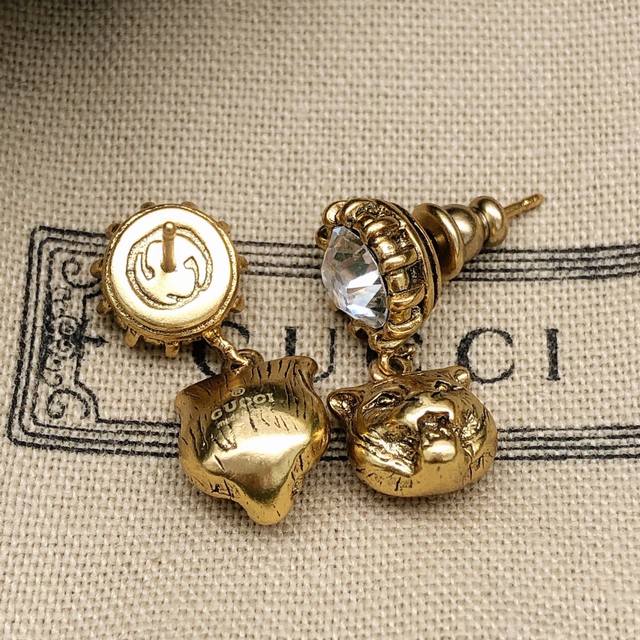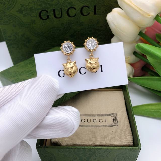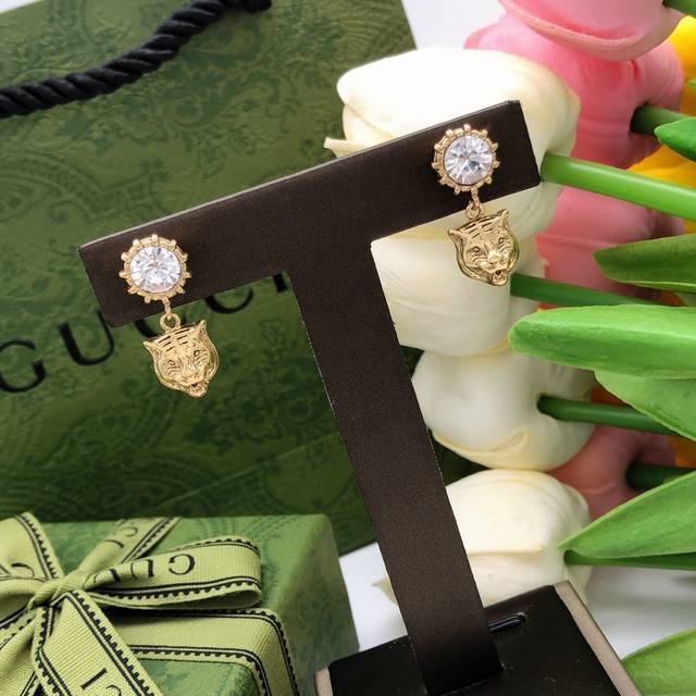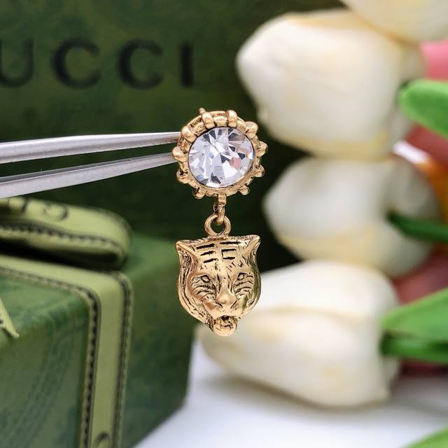Item No. Ged0022 DDD Gucci Tiger Head Earrings with Colored Diamonds DDD New Retro Style Fashionable Design, Very Beautiful, High-Quality Material DDD