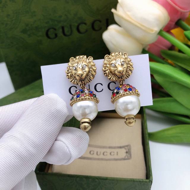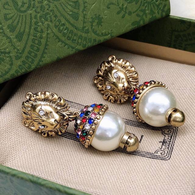 Gucci Lion Diamond Earrings. Cool lion design, antique bronze color, retro and stylish. Wearing them makes you a cool girl.
