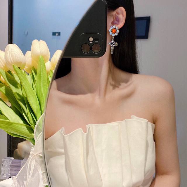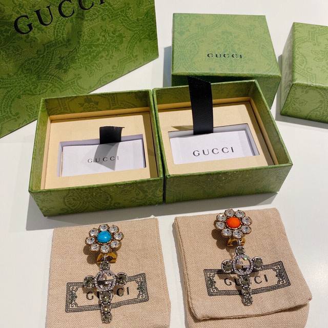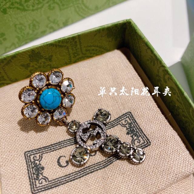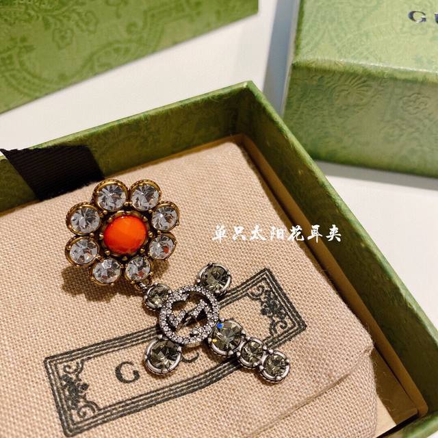 Gucc Gucci Sunflower Single Clip-on Earring with Sunshine Daisy Orange Turquoise High-End Customization!