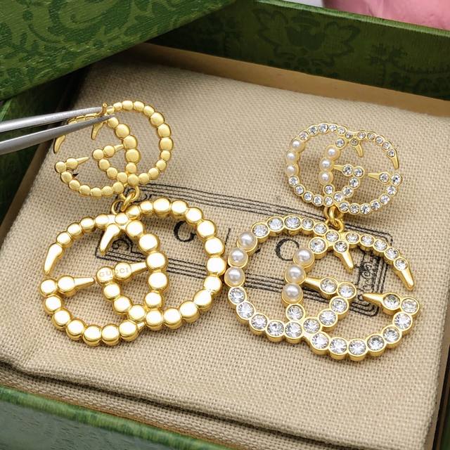 / Item No. Ged0118 Gucci Double G Rhinestone Seed Bead Stud Earrings Ddd