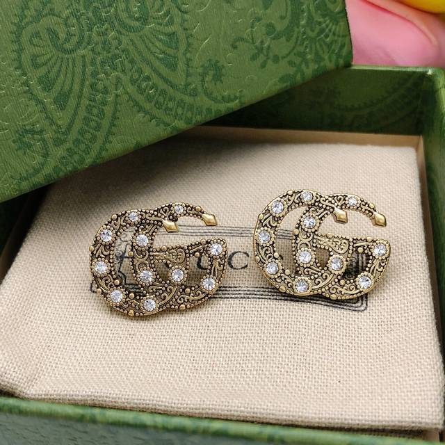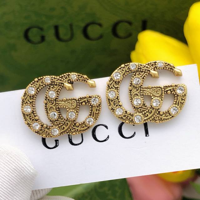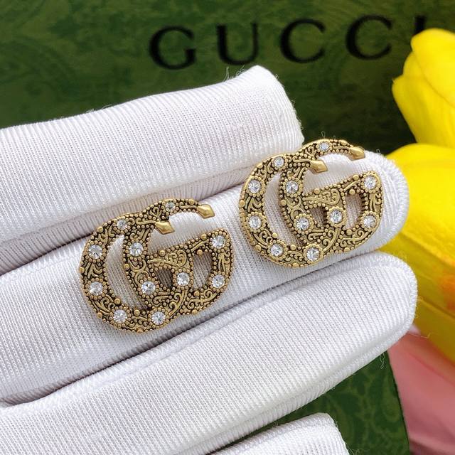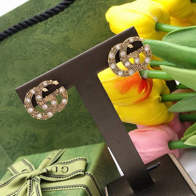 / Item No. Ged0132 Gucci rhinestone double G cable earrings, a must-have for retro