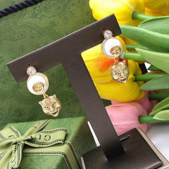 Gucci tiger head clip-on earrings. Cool tiger head design, bronze color, retro and fashionable. Wearing them makes you a cool girl.