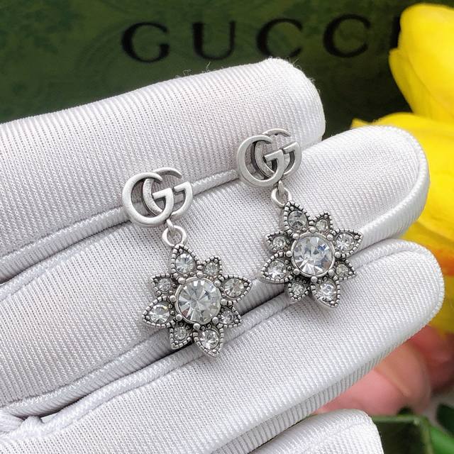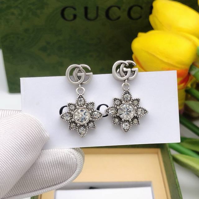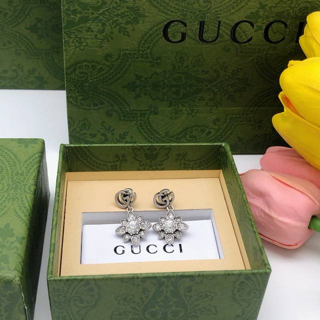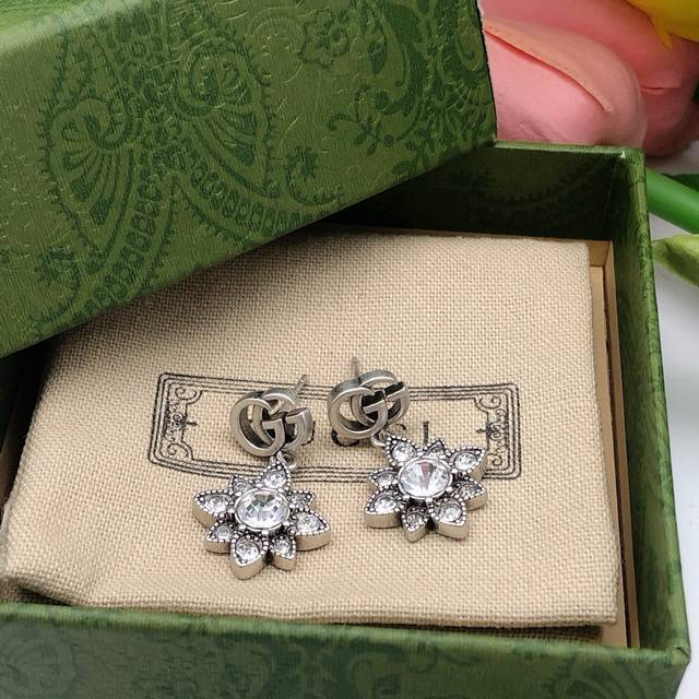 / Item No. Ged0179 New Gucci Silver Sunflower Earrings Ddd